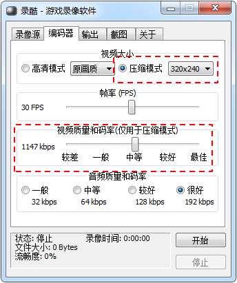 一般是由于画面大小或帧率(FPS)设置过高造成的,请尝试减少这两个参数的大小;并且尝试不要使用”高清模式“。
